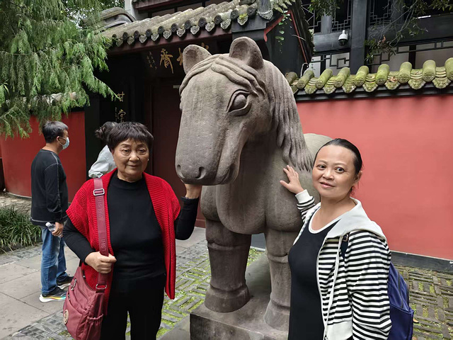 在走廊石凳上歇着时,风穿古柏的声里,《三国演义》的调子忽然漫上来:“滚滚长江东逝水,浪花淘尽英雄……” 想起温酒斩华雄的豪情、火烧赤壁的壮阔、六出祁山的执着,如今都凝在雕像的衣纹里,落在碑刻的墨迹中。可千年光阴一过,再辉煌的功业也会淡,倒是身边的岳母、妻子,眼前的阳光、风,才是最实在的暖。