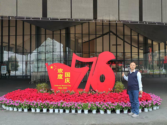 我们心里没底:国庆博览馆开不开?没预约能不能进?先把车停在馆外,对着五粮液商标的鎏金雕塑、印着品牌标识的大楼拍了打卡照,像给这段 “酒香之旅” 先盖了个戳。抱着试试看的心态跟着车流往里走,保安小哥笑着指引停车:“参观从这边进,不用预约。” 心里的石头一下子落了地。