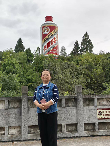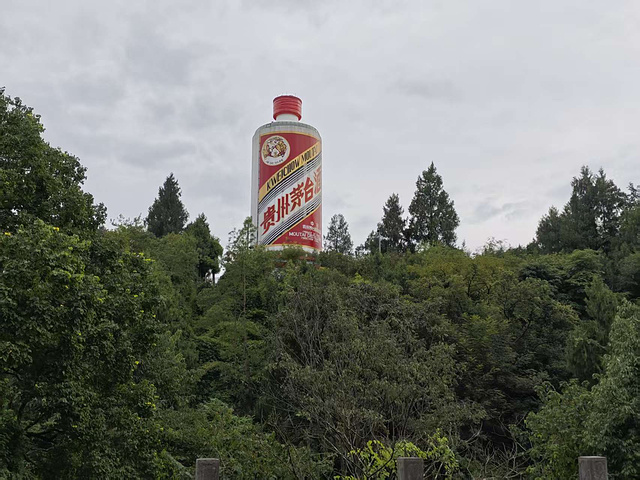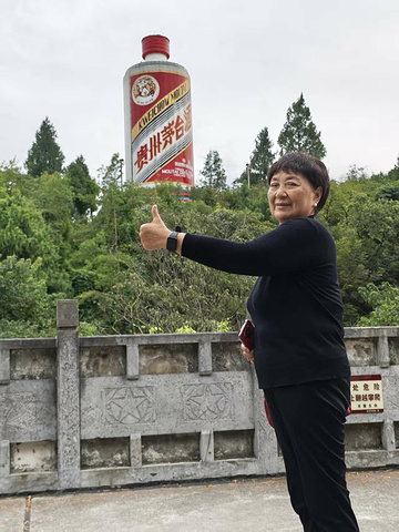 最期待的还是 “天下第一瓶”—— 巨大的茅台酒瓶雕塑立在山顶树梢间,高几十米,瓶身上 “贵州茅台酒” 的字样在阳光下格外醒目,连瓶身的纹都透着贵气。我们围着雕塑玩起了创意拍照:我把酒瓶 “背” 在身后,双手作 “扛” 状,假装 “扛着酒走天下”;又站在雕塑前,双手往上托举,做出 “举着酒瓶” 的模样,表情夸张得惹笑;妻子更有创意,用一根手指顶住瓶底,摆出 “单手托酒瓶” 的造型,像有超能力;岳母也跟着学,用大拇指轻轻顶着瓶身,笑得眉眼都弯了。旁边的游客见了,也跟着模仿,广场上满是笑声,酒香裹着笑声,格外暖。