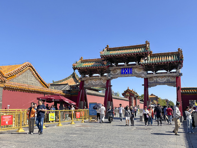 今天计划游览沈阳故宫。方城大西门附近有个瑞幸咖啡,点了一杯。但这个咖啡店是在一个不起眼的院子里面,找半天才发现,哎,喝杯咖啡还挺不容易的。拿上咖啡进大西门,沿满清一条街走向故宫。这条街两侧都是仿古建筑,挂着长串的红灯笼,端的一个气氛热闹,很符合东北人性格。