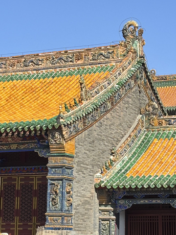 中路的建筑外观非常豪华,崇政殿顶铺黄琉璃瓦,镶绿剪边,正脊饰五彩琉璃龙纹及火焰珠极精美气派。