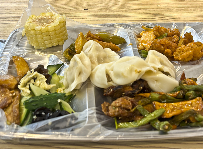 公交回酒店的路上见到一个小红帽快餐店,果断下车。15元随便吃,菜很多样,肉菜也不少,沈阳著名的鸡架也有,而且也不难吃,感觉能吃到这么多菜非常棒,才15元让我好惊讶,沈阳物价这么便宜呀!