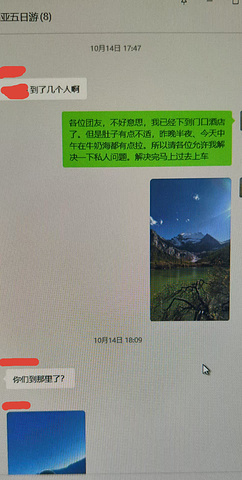 回到景区新游客中心大概17:45分。肚子又有点反应了,怕蹲太久6点赶不到车上,就提前在群里说明了下情况,然后到朋友在亚丁红景天酒店开的钟点房里蹲坑。还算顺利,6点前赶到车上等人。
