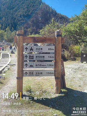 14:25回到洛绒奶场,坐上电瓶车,14:46到冲古寺(因为是下坡,所以快了一些,上坡估计要25-30分钟)。