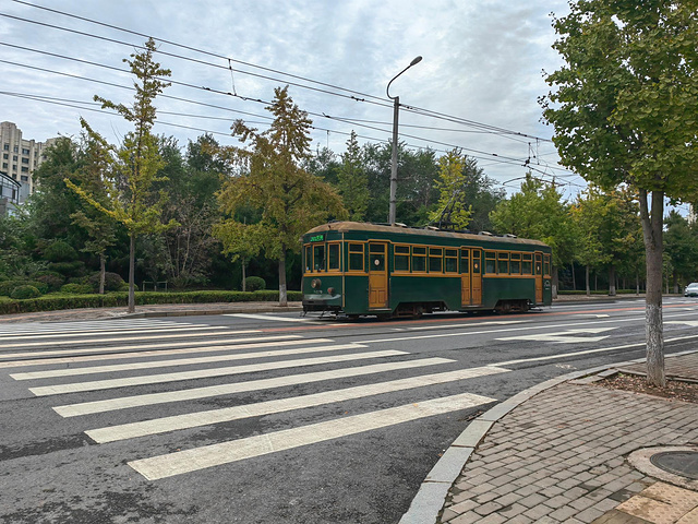 早上坐有轨电车201路去海之韵。大连的有轨电车有着上百年的历史,如今还保留着201路和202路。201路的电车有几款很有看头。