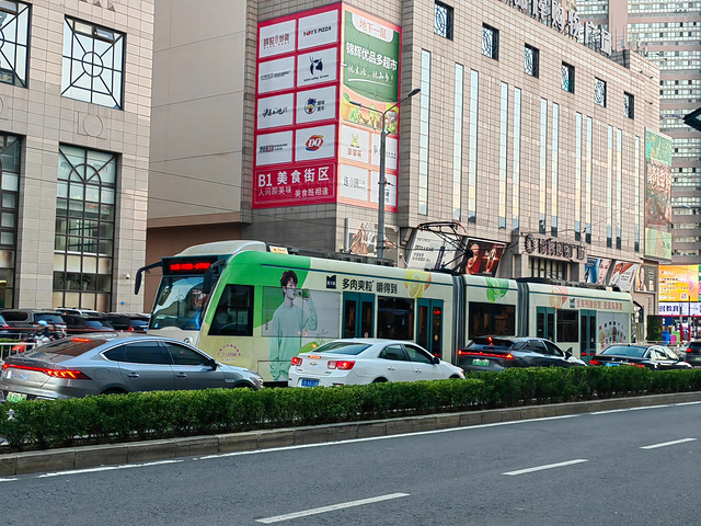 从东港返回,看到202路有轨电车,运载量不错啊,款式就这样的一种。