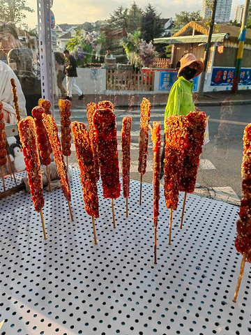 看到了扁状的糖葫芦,但我还是选择了原始模样的糖葫芦。