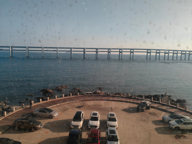 博物馆的窗口望出去可以看到跨海大桥。星海湾大桥是大连市境内连接甘井子区与西岗区的跨海通道,位于黄海水域上。