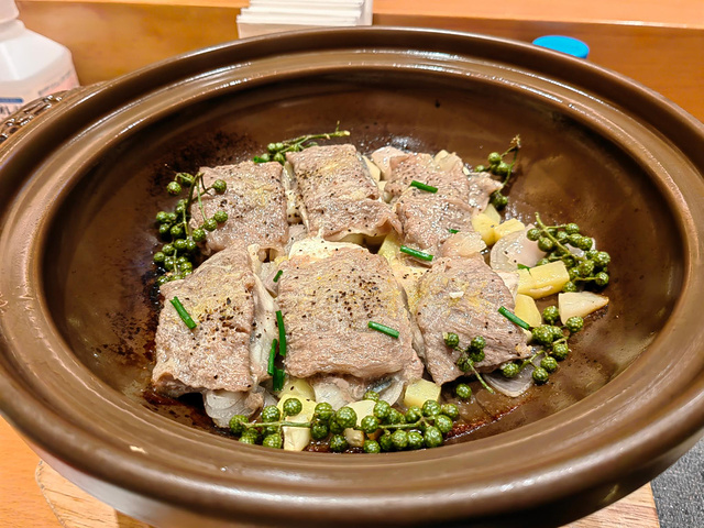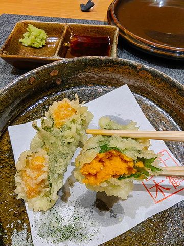 樱木千鹤日本料理(星海店)晚餐。活赤贝手握,鲜嫩程度出人意外。海胆天妇罗。天妇罗炸得没问题,但海胆的鲜甜口感已经没有。味噌和牛竹荚鱼,有点腥味。这形式感觉是中国料理。凭借食材的新鲜做日料是可以,但烹饪是否好,真考验技术的。来自游记大连初秋五日行