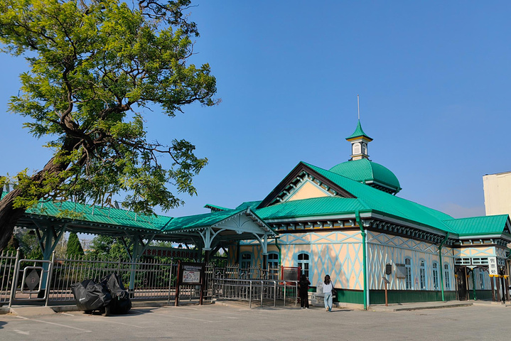 从白玉山南面下来可走到旅顺火车站旧址。1898年,沙俄强租旅大,着手扩建军港,铺设铁路,将此站点作为中东铁路南线的终点站。火车站是白墙绿顶的俄式建筑,这里见证了多少历史啊。2014年这个火车站结束了长达111年的运营历程。来自游记大连初秋五日行