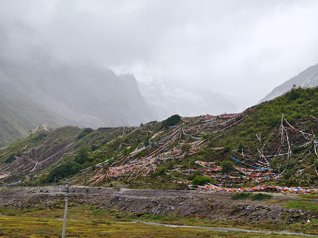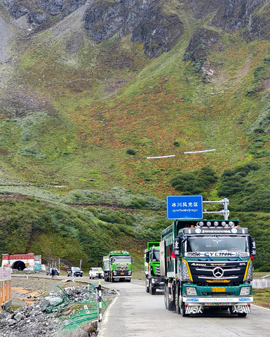五彩的经幡被挂在隧道口周围一切可能之处,这也许是人们穿越天险前对前路平安的祈愿吧。