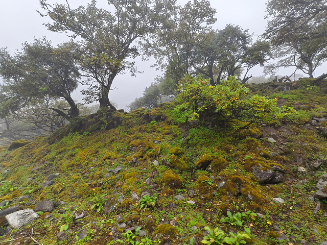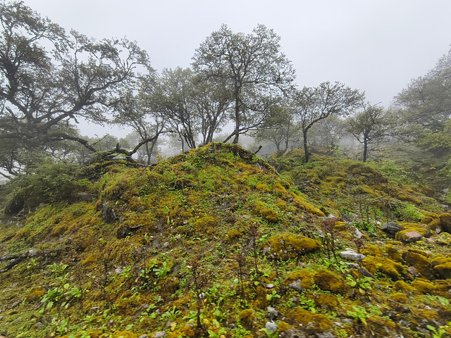 一路攀爬,继续上坡,经过八道拐,昨天进来的时候浓雾弥漫。