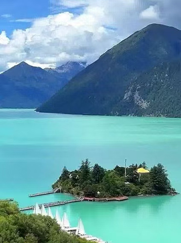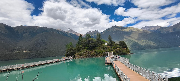 都说巴松措的湖心岛是这片高原湖泊的灵魂所在,它像一枚被碧水托起的翡翠印章。