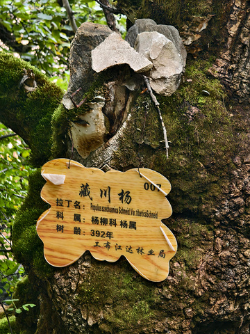 神奇的"桃抱松"(桃树中生长出松树)、树形奇特的"生肖树"、粗壮的藏川杨。