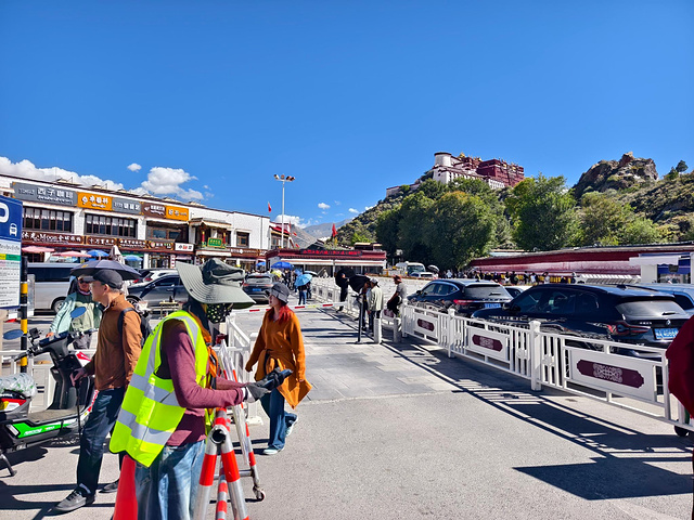 网约车把我们放在了北门,这里是布达拉宫的出口。门口很多拉客的导游,进布达拉宫还是需要讲解,我们也找了一个执证导游。