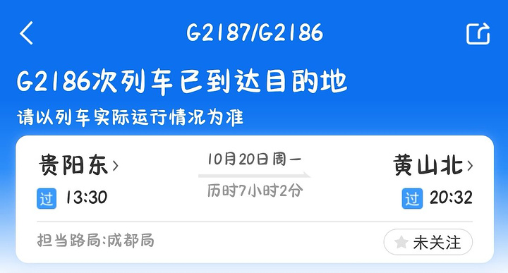 遵义出发前往黄山并没有直达的,只有贵阳东站直达黄山北,而且每天车次只有一趟,需要7小时676.5元,提前备带好吃的出发