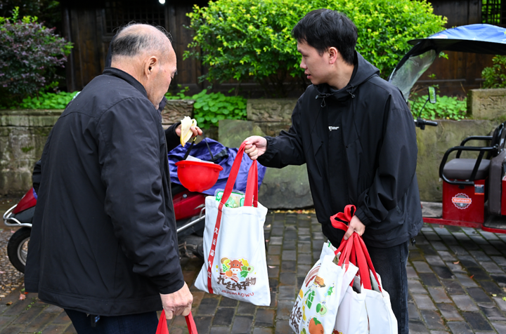 在清晨的忙碌里 接过了敬老爱老的接力棒
