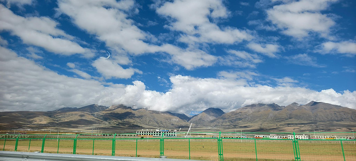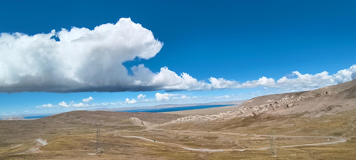 向北眺望,纳木错如一面宝镜嵌在天际。
