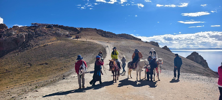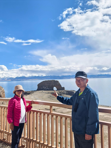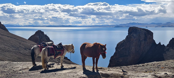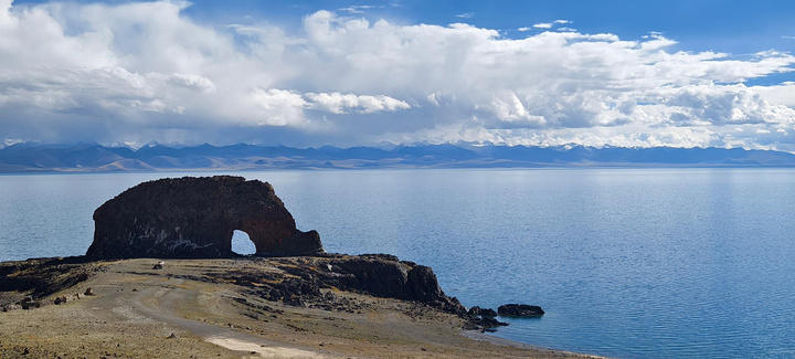 远处的石像就这样静谧地隐匿在这里,与圣湖和神山相互守望。