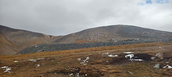 周围金色草场、湛蓝天空以及那连绵起伏的山峰给人愉悦的视觉冲击。