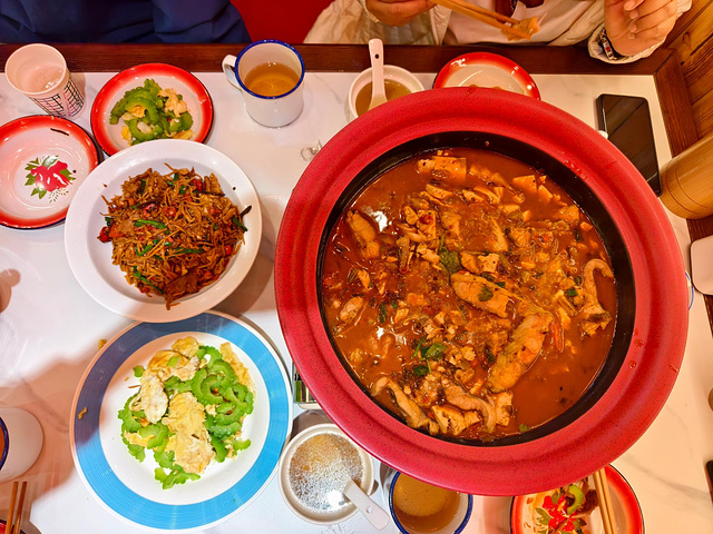 晚餐的餐厅是在酒店旁边的一个湘菜馆,虽然有些辣,但味道还不错。