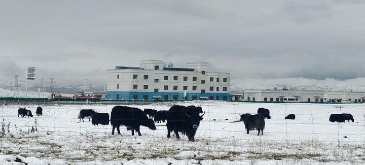 路边那些拱开薄雪,寻找枯草的牦牛,它们的从容与雪的静谧也相映成趣。