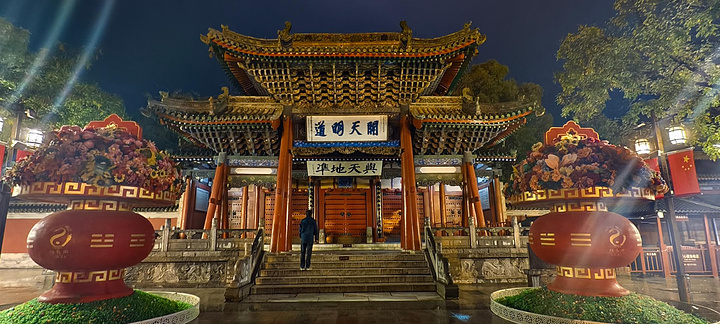 伏羲庙坐落在伏羲广场的北侧,这个时间点已经关门了。