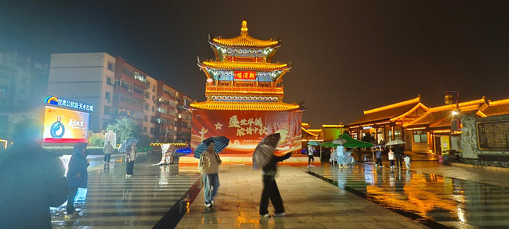 入夜的天水开始下雨,我们叫了网约车去往天水古城。