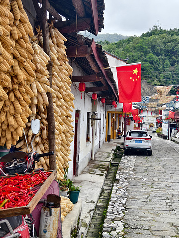 火红的辣椒、金黄的玉米,一串串挂在老宅的木窗旁、廊檐下,是跳动在青瓦白墙间的暖色音符。