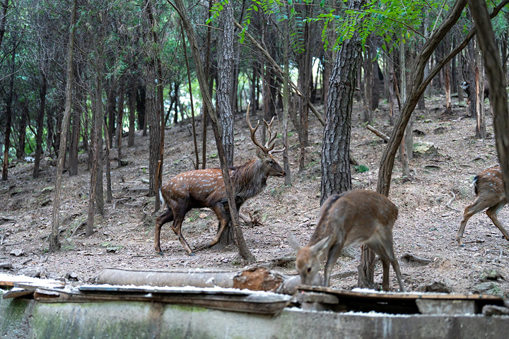 再往前走,隐约听到 “窸窸窣窣” 的咀嚼声,我们加快脚步,眼前的景象瞬间让人心都软了:十来只梅花鹿围在石制投喂台旁,有的低头啃着胡萝卜,有的卧在草地上晒太阳,还有两只小鹿追着玩闹,偶尔用脑袋蹭蹭彼此。我们赶紧拿出提前切好的胡萝卜条,刚放在投喂台上,一只毛色光亮的梅花鹿就凑了过来,它的眼睛圆溜溜的,吃胡萝卜时嘴巴一动一动,偶尔还会抬头看我们一眼,一点也不怯生。
