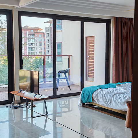 今天本来打算一大早去海边看日出的,结果还是睡过了头,等我醒来时太阳已经站在了山头上。晚上睡觉我并没有拉上窗帘,阳光透过宽大的落地窗照在我的床上、墙壁上、地板上,将整个屋子照得亮堂堂的。