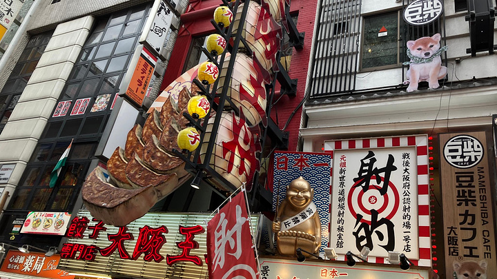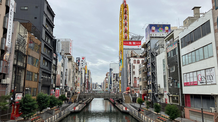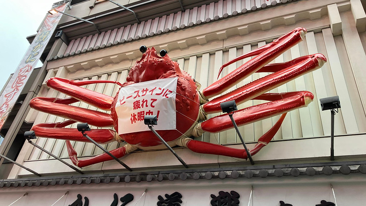 道顿堀是一条运河,也是大阪著名的商业街区之一,以其巨型霓虹广告牌、餐厅和剧院而闻名。其北侧是心斋桥,如果心斋桥主要是商店买买买,那么这里就是吃吃吃,相邻的几条街内聚集了大量的餐厅,游客当然也是特别的多。比较有特色的是河岸边各个商店楼一样高大的平面广告牌,以及各种餐厅在门前架设的巨大立体雕塑广告牌,有些甚至还会动。坐船游览也是活动之一,不过距离较短,游船头有时有服务员唱歌,会有河岸的游客互动。