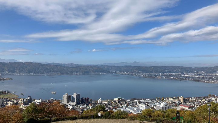 冈谷市、诹访市、诹访郡三个城镇的交界处,这个湖比较大,从高处远瞰湖岸周围城市建设了一圈高楼房屋。比较好的观赏位置是湖东侧山上的立石公園,不过停车场比较小,假日据说会排大队。这里白天晚上景色都很好,晚上沿湖城市的灯光比较明亮。同时还是不少电影动画的取景地,国内比较熟悉的应该是新海诚的《你的名字》。