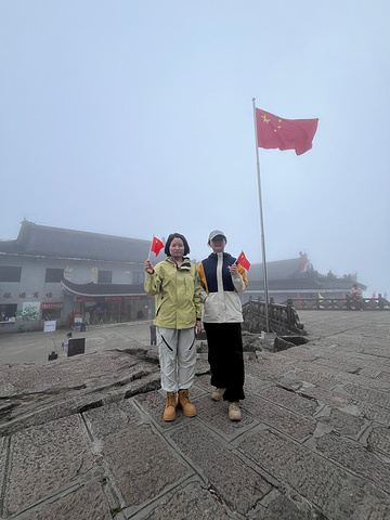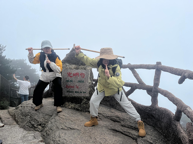 当到达白鹅山庄,也就意味着离光明顶不远了,我们这次是选择了先到达光明顶,再去白云宾馆预定帐篷。但是,后来发现这个选择是有些不足之处的,我们忽略了第二天早上也是到光明顶看日出的行程,导致在第一天上午光明顶排队拍照就花费了1个多小时,造成了时间的浪费。