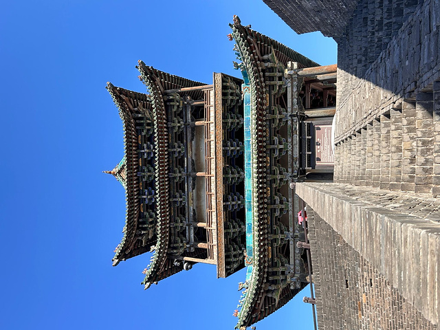 推荐从迎薰门(南门)登上城墙,这里是古城的正门,也是游客最集中的地方。城墙之上,青砖铺就的路面蜿蜒向前,两侧是垛口和瞭望孔,每隔一段就有一座敌楼,气势恢宏。徒步城墙的最佳时间是清晨或黄昏:清晨的城墙笼罩在薄雾中,远处的炊烟袅袅升起,古城在晨曦中渐渐苏醒;黄昏时分,夕阳为城墙镀上一层金色,远处的屋顶错落有致,随手一拍都是绝美的大片。