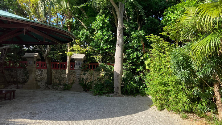 那霸当地非常有名的神社,距离住的酒店很近,小日子来基本都会参拜买护符,因为据说很灵。琉球王国时期建造的神社,建在珊瑚礁悬崖上,琉球八社之首,屋顶是琉球风格建筑特征,也颇有中式风格。神社很小5min就能看完,大多是排队买护符的,正门左手有向下走的路,可达到神社所处悬崖下的沙滩,沿悬崖一周的水域被拦起不让进。阳光的照射下,这片水域显得特别清澈,呈现碧蓝色,这片沙滩还是那霸少有的公共沙滩,11月前可以游泳。另外还有比较好的角度是神社北侧的高架桥上,可从高远处拍到整个悬崖和神社。