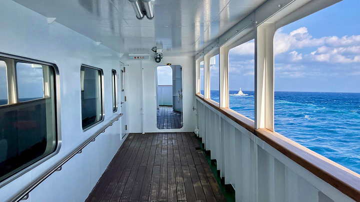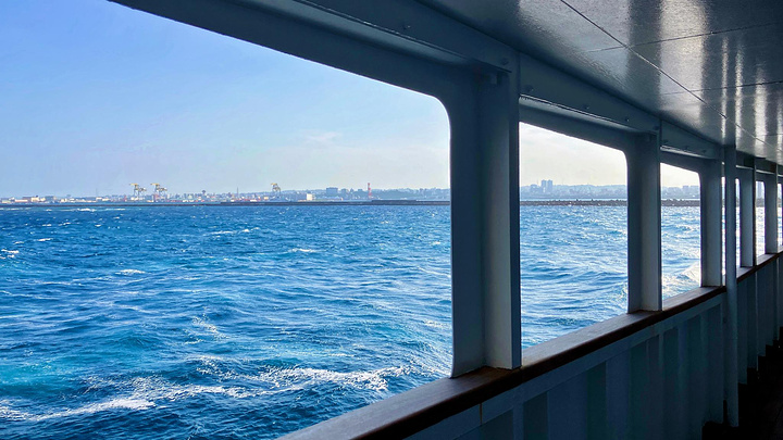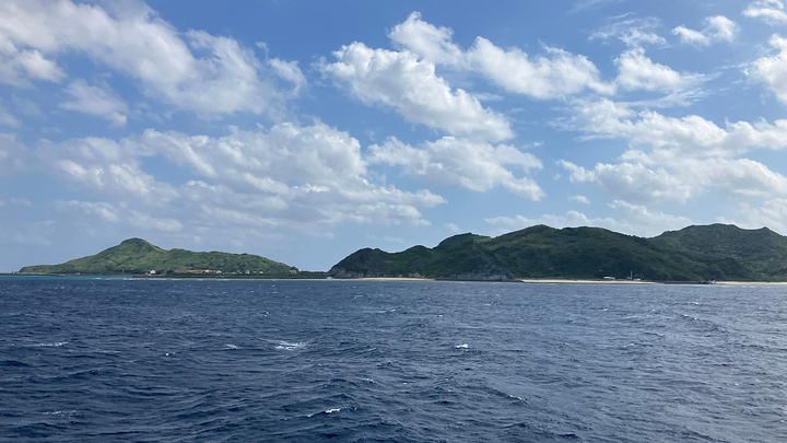 整个航行期间海上景色都差不多,只有出入港的时候有岸边景色可以看。这个渡轮中途会经过渡名喜岛停靠,也就是第二站才到达久米岛。