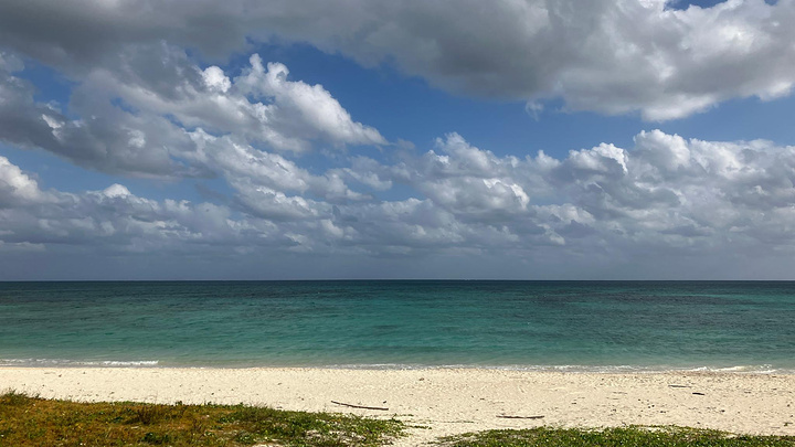 伊夫海滩(Ifu Beach),日本百佳沙滩之一,位于久米岛的东侧,这个沙滩由于不冲着外海,并且周围有浅谈抵消了部分海浪,相对比较风平浪静。11月初去就是包场,一个人都没有,也错开了小日子的假期。沙滩是偏白色的,很细不过有不少木头。入海有大约20米左右的碎珊瑚带,比较扎脚,浅滩部分也很大,深海游了30米多深度都还5米左右。另外沙滩南部有一片浅礁区也就1米多深,如果浮潜的话,这里有不少小鱼,大鱼没有。浅滩的珊瑚全都白化了,都是死珊瑚。