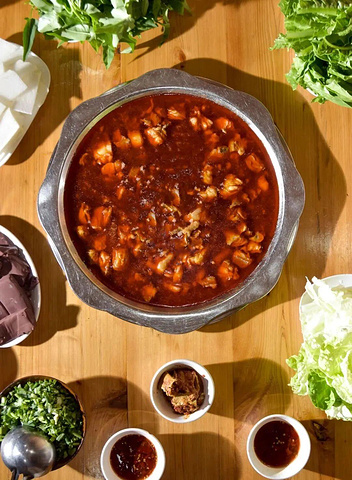 中午在古镇吃啥,当然是来上一份地道的「尧坝红汤羊肉」。
