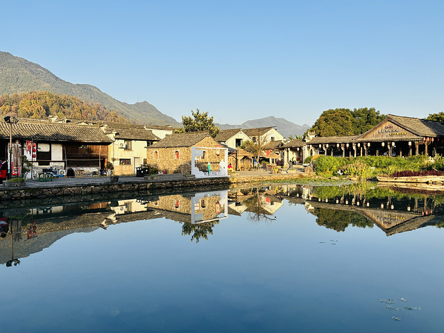 穿过小巷向北就是砚池,经典民居环抱中心池塘,平静水面倒映着高低错落的马头墙,非常漂亮有意境。夜景尤为诗意,是古镇最美的画面。周围还有茶摊、咖啡馆、长廊等,环境很好,最适合静静坐着。