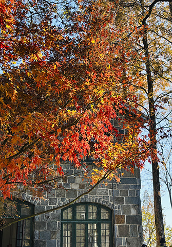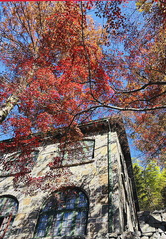 第5站是莫干山会议旧址(大教堂),这里没有红叶,但教堂的红砖建筑与彩窗很美,很文艺。