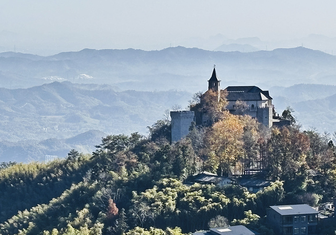 从这里还可以远观祼心堡。远望漫山的银杏与红枫交织出浓烈的秋意,山风掠过树梢,簌簌作响,是这个秋天最动听的回响。