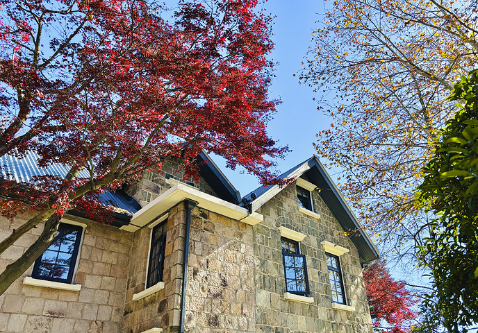 下榻处这里红枫不少,但拍照角度不好找。别墅里面不感兴趣简单走走就出来了。向上还有别墅,不知红枫多不多,挺高的就没上去原路返回继续乘观光车到下一站。