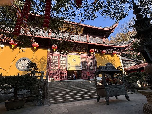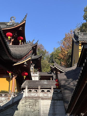 这里还与灵隐寺之间有电瓶车相通,游人就多些。进去一看果然宏大,一层层大殿叠叠向上,布局井然,肃穆庄重。赠3支香上过香后,一层层向上慢慢参观,挺高的最后一层没上了。