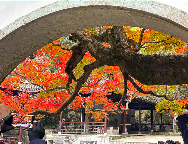 公园里面的院子、圆门、花窗等也是很美,特别是梦泉茶堂圆门内那棵老红枫最是有形,围着不少人在拍照,可以拍出非常漂亮的片片和视频。可那些无知大妈和美女就是要站在前面拍人像,角度不对便不美了,还大大影响别人的拍摄。