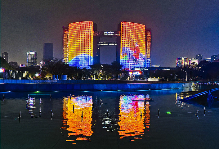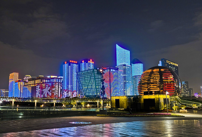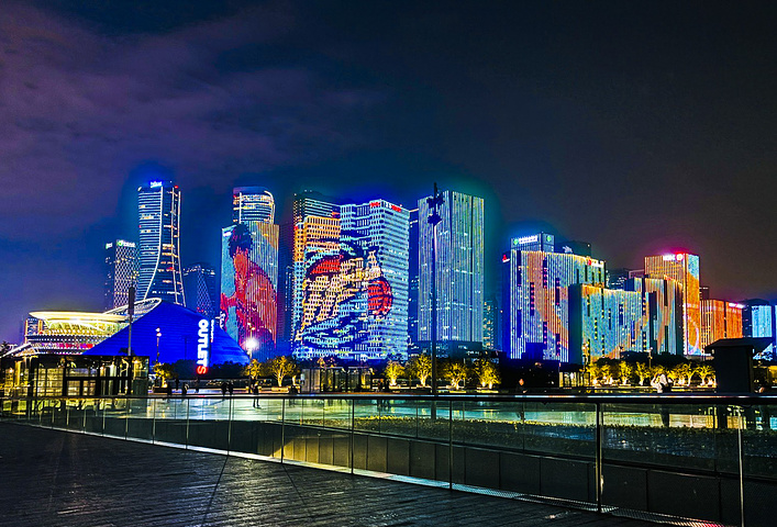 平台环境很好,大大的一片有好多坐椅面对江面,对岸和这岸的城市建筑都很漂亮,杭州大剧院、国际会议中心、奥体中心等都在这一片,晚上6:30还有灯光秀。