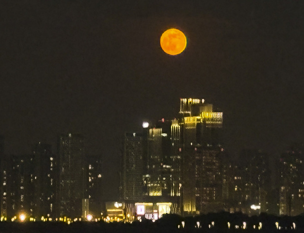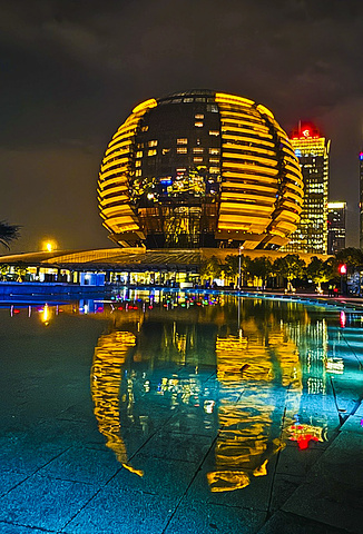又拍了下面的日月灯光照片,大剧院的造型和倒映水中的灯光很漂亮呢。