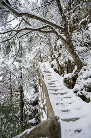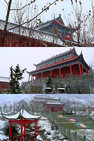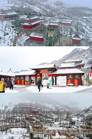 下缆车后坐一小段观光车就可到灵官庙,大雪时,红墙黛瓦置于纯白之间,古香古色,特别出片。