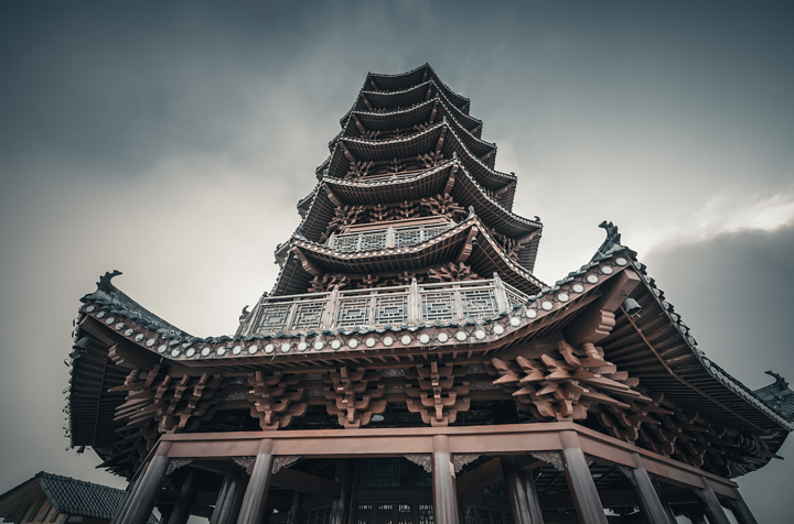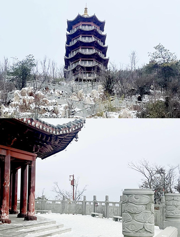 要想赏到最极致的雪景,还得继续上楼。七层高的塔楼,每一层都有露台可供赏景,一层楼一种景,到达楼顶,即可感受万里飘云、“一览众山小”之姿。