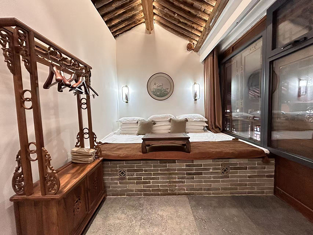 位置好,距离景点也近,适合喜欢安静的友友选择,房间多以土炕房为主,可以选择清欢小套房,有来里面两间大炕组成,房间古风元素家居设计感满满